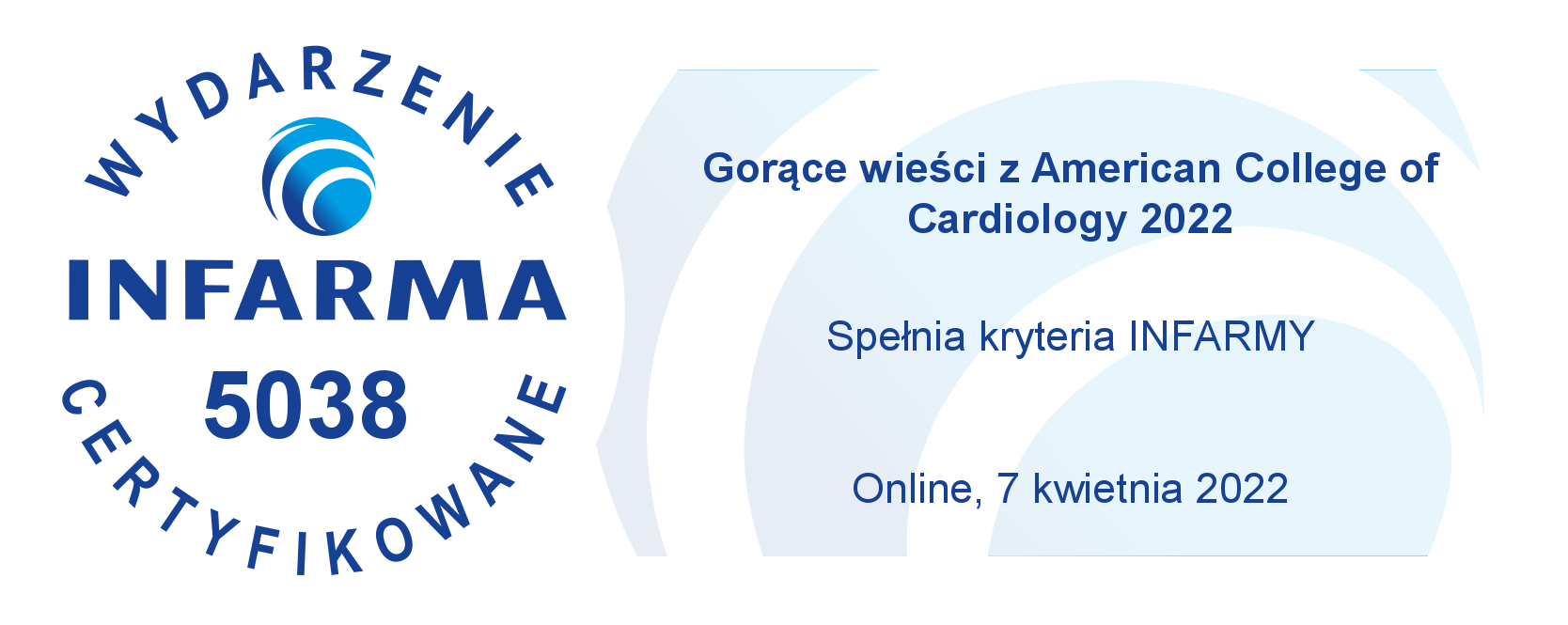 Podczas transmisji na żywo prof. dr hab. n. med. Jarosław D. Kasprzak oraz prof. dr hab. n. med. Piotr Lipiec przedstawią najnowsze doniesienia z tegorocznego Kongresu American College of Cardiology (2–4.04.2022 r.). To doskonała okazja do wymiany doświadczeń z kardiologami z całego kraju, zapoznania się z wynikami aktualnych badań klinicznych i populacyjnych dotyczących chorób sercowo-naczyniowych, a także innowacyjnymi rozwiązaniami w zakresie ich leczenia. Zdobądź wiedzę, która rzuci nowe światło na opiekę kardiologiczną i wykorzystaj ją we własnej praktyce lekarskiej, podnosząc jakość życia swoich pacjentów!